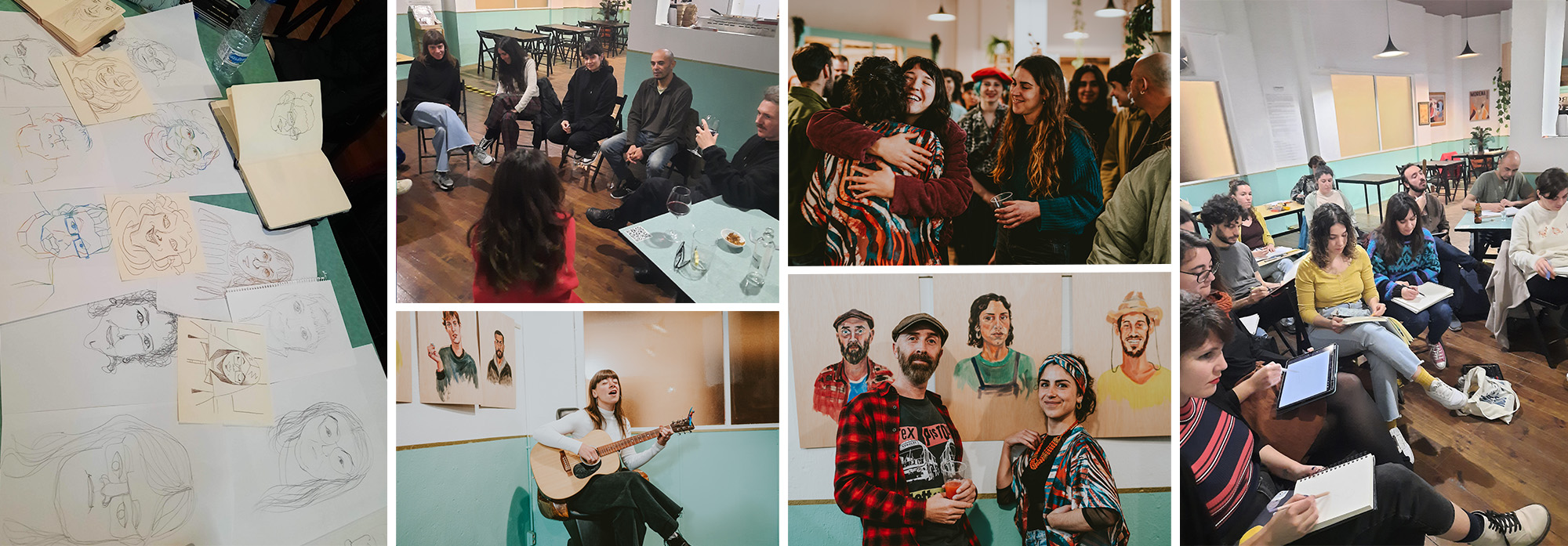 La exposición estaba viva. El tiempo que estuvo montada, Luminario también fue un lugar de encuentro semanal con actividades donde los asistentes podían retratarse entre ellos, con sesiones de dibujo de modelo vivo con música en vivo (una combinación que afianzaba la concentración y la cohesión grupal), con encuentros de reflexión sobre procesos creativos con otros artistas, con sesiones de improvisación de música, dibujo y poesía y con fiestas de folclore latinoamericano.